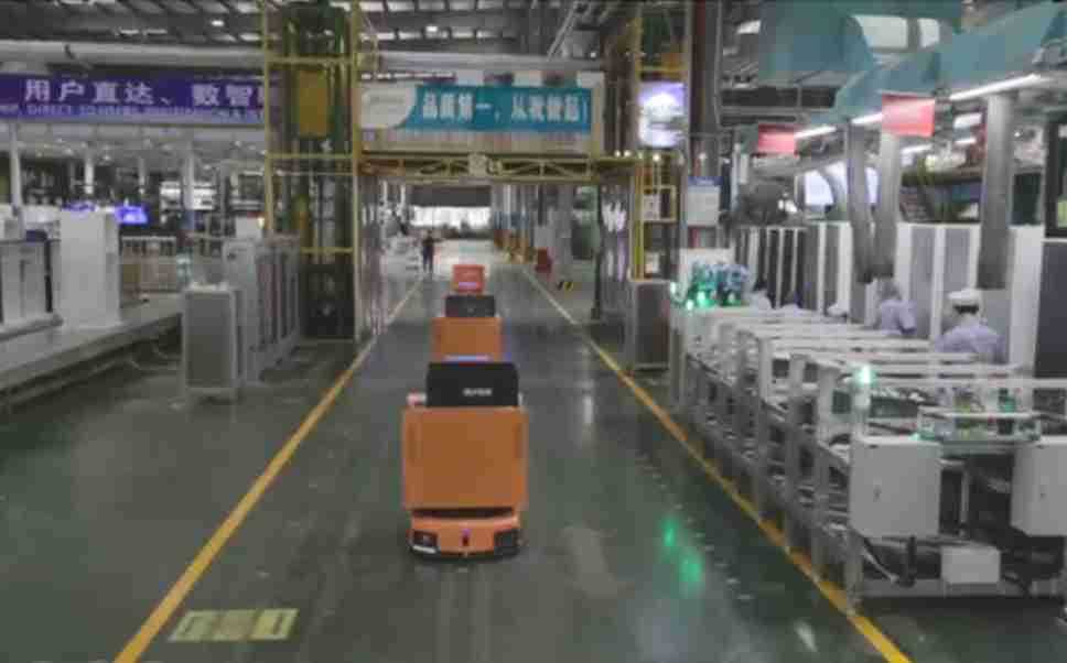 为车载冰箱物流配送打造的智能解决方案,,包含产中物流通过潜伏举升AMR搬运至线边,,产后成品物流智能仓储,,流程包含产中物流智能齐套入库,,线边安灯叫料AMR智能配送至线边,,,成品入库、、、出库,,,,通过无人堆高车机器人,,,智能仓储管理替代人工作业管理,,,实现更高存储、、、、更高效率、、、、更具柔性化的解决方案。。。